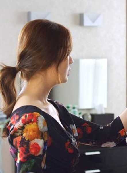 从侧面看,这样的你想马尾慵懒随性,发梢处的卷发太让人心动了,这样的尹恩惠有另一种美。