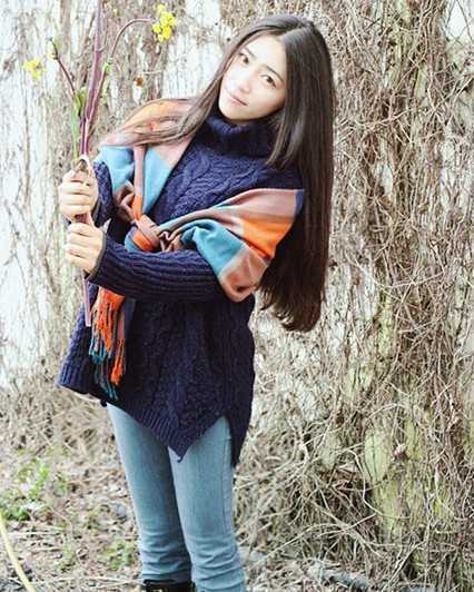 一头自然黑发色衬托出白皙脸颊,两颊带点内扣发尾,修饰了脸型,散落在肩后面的发丝超美的哦!