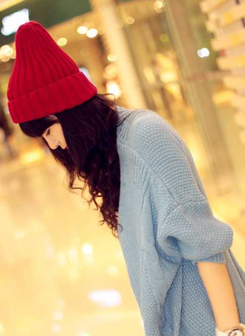 侧面看,精致甜美,搭配红帽子,透着十足的青春活力,清纯校园风十足哦!