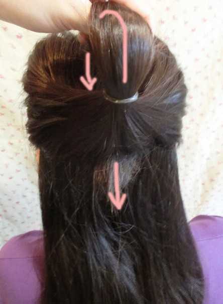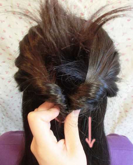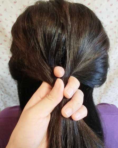 将扎好的马尾向上,塞进头发空隙中,如图所示。