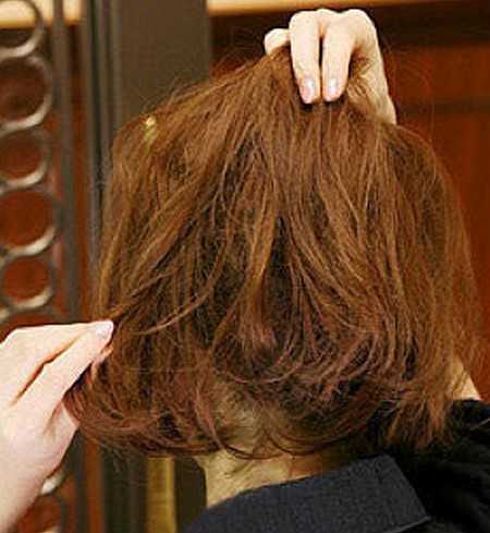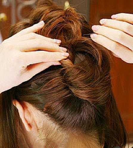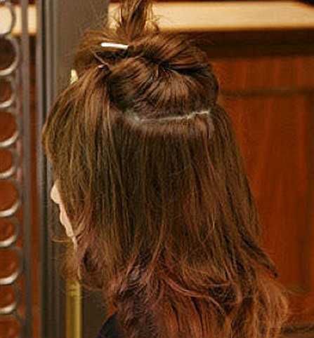 步骤三:将第一次固定好的头发放下来,盖住第二步骤的头发。