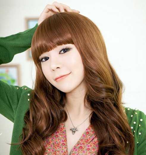 齐刘海的减龄效果十分明显,超级浪漫的卷长发分成两撮摆放在两肩上,搭配个性的金黄色染发,让人有种洋娃娃的感觉,更是展现了女性优雅的一面。