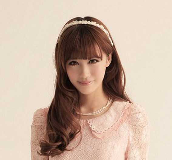 空气烫长发中却无声无息洋溢出公主味道,栗子色的空气烫长卷发,灵活得像个活泼的孩子,齐刘海的设计配上甜美的笑容,很有亲和力,搭配时尚的服装头饰,很美!