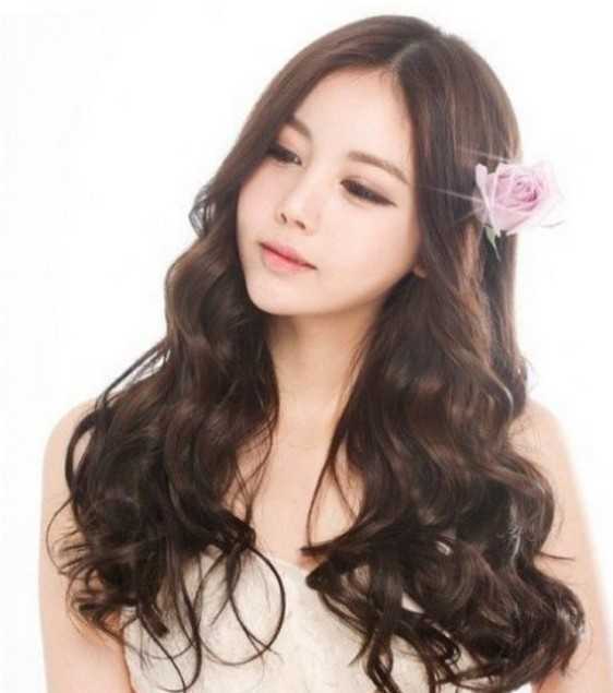 好美的一款长发,给人清新秀气的感觉,层次不规则的长卷发突然灵活起来,也成功对脸型进行了修颜,而深棕色发丝也瞬间变得光泽起来,闪亮的花朵发饰显得更加迷人,脸圆的女生不容错过哦!