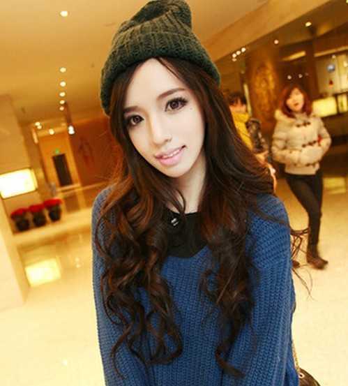 极具修颜效果的长卷发,加入深棕的染发颜色,更是增添了不少的活力感呢!中分的刘海在小绒帽的装饰下,在冬季里无疑是最百搭时尚的一款造型设计。