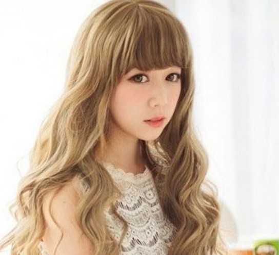 时尚的亚麻色染发,给这个冬季里融入最流行的风格,加上大波浪长发发型,微斜弧度的齐刘海又是卖萌减龄必备武器,就好像一个可爱美丽的芭比娃娃哦!