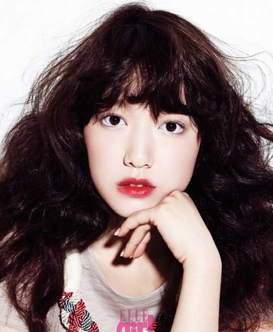 一款蓬松的长卷发型,一个清新的妆容与无辜的眼神,将朴信惠洋溢着芭比娃娃的感觉,松散的齐刘海反而变得时尚起来,与浓艳的红唇作了一个很好的搭配。