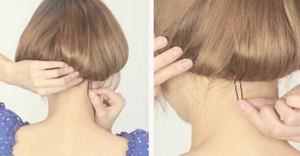 4、这时把打好结的头发往内塞起来,使用U型夹绕8字固定好位置。