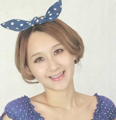 6、最后在顶部上加入波点式的蝴蝶结发饰就完成了,哈哈,超简单的盘发却打造出韩式甜美的感觉哦!喜欢的赶紧学起来。