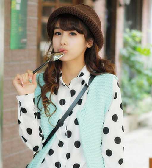 超萌可爱的小女生,在一款时尚的长卷发的衬托下,更是俏皮迷人的感觉,弧度卷的刘海,成了整个发型中最创意的设计,同时也把圆脸型修颜了,棕色系的毛线帽,在冬季里更是温暖可人。