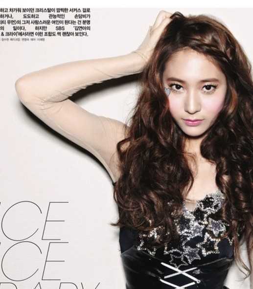 动感的长发蛋卷头,把郑秀晶迷人的脸蛋衬托得完美极致,结合上特色的刘海编发,潮流时尚一起并发出来,用手随意抓起的头发,甜美的妆容,却是小妩媚性感魅力。