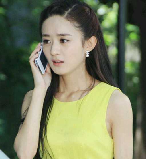 自然顺滑长发的赵丽颖,精美的小脸却不需要任何装饰,简单的发型就可以很好看了,无刘海和半扎的设计,搭配时尚黄色背心裙,尽显出俏丽淑女味道。