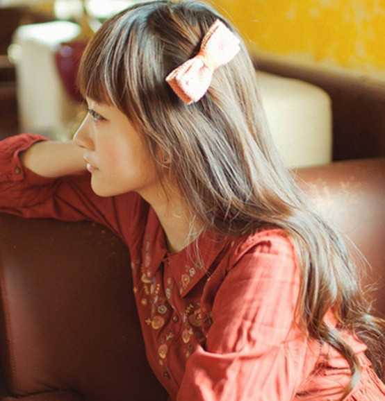 长长披肩后的卷发束,侧面的展示脸孔,冬季里显得一副无比清纯迷人的感觉,少许凌乱发丝看上去小优雅魅力,蝴蝶发饰的侧扎头发,小甜美可爱哦!