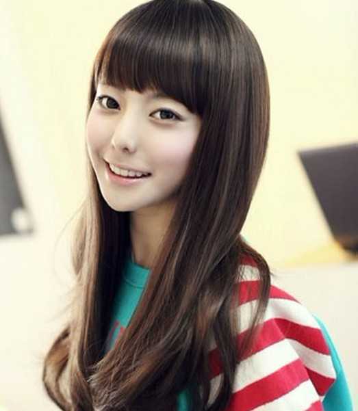 超萌系的韩式长发发型,顺滑的发质带给人无比的舒适轻松感觉,整齐的刘海装点下,甜美可爱淑女感十足!