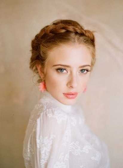 欧美风的女生盘发发型,全部往脑后盘起的长发,顶部上结合花环式的设计,既能露出精美的脸蛋,冬季又是清新迷人范尽显。