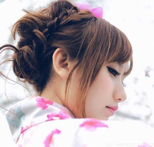 属于日系比较甜美冬季盘发,编发和长卷发的完美结合,刘海垂下的发丝,既修颜又显得美腻感,侧面的展示效果,完美透出清纯迷人的女生感觉。