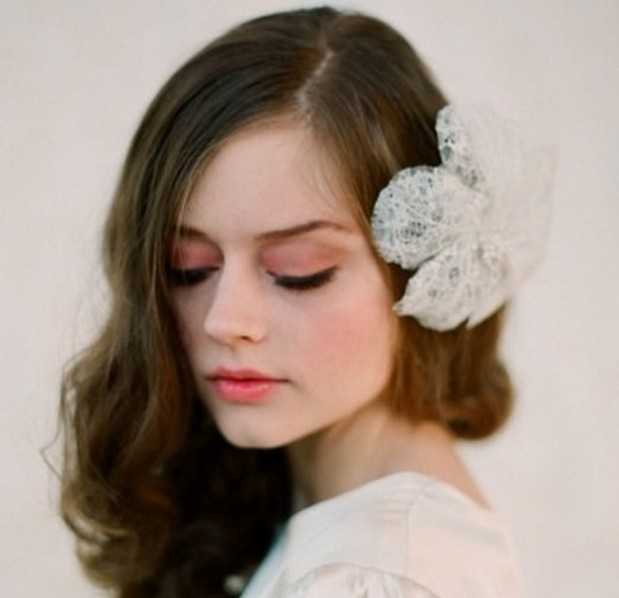 浪漫森系风的欧美新娘发型设计,气质的侧披长卷发设计,春季里简约而不失华美感觉,耳际处装饰的花朵蕾丝发饰,甜美般的气息完美呈现出来。