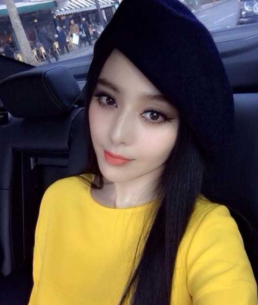 顶着一个橘色妆容的范冰冰,标志的脸蛋看来就是美美的呈现,乌黑的长直发在贝雷帽的衬托下,显露小妩媚迷人的女人味道。