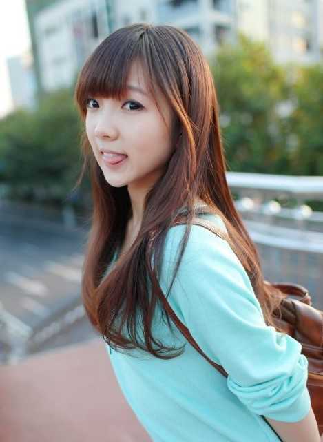 俏皮又可爱的女生,搭配微卷的长发发型,演绎出迷人的优雅风,碎薄的齐刘海设计,深色的染发颜色,绝对是夏季显清纯的搭配。