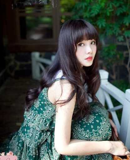 夏季显气质的花式吊带长裙,标志瓜子脸的女生,再以一头无比浪漫迷人的长卷发来造型,搭配短短内扣的齐刘海,相当有女人味。