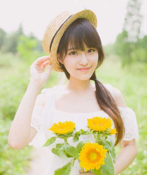 长长的头发,简单侧扎个马尾发辫,既是清新的美感又不失小女生可爱的韵味,编织帽子的搭配,非常有夏日味道。