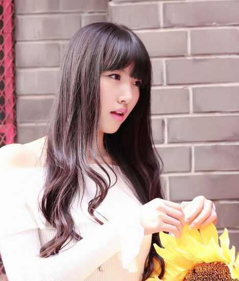 淡紫发色的夏季长发发型,发尾作出微卷好看的弧度,柔美中显露出温婉女性魅力,斜分一角的刘海设计,修颜和清纯尽显。