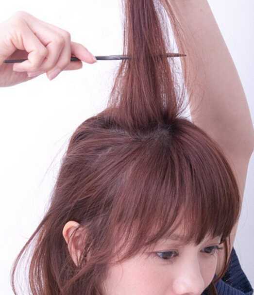 1、首先从头顶出一束头发,使用梳子逆方向打毛。
