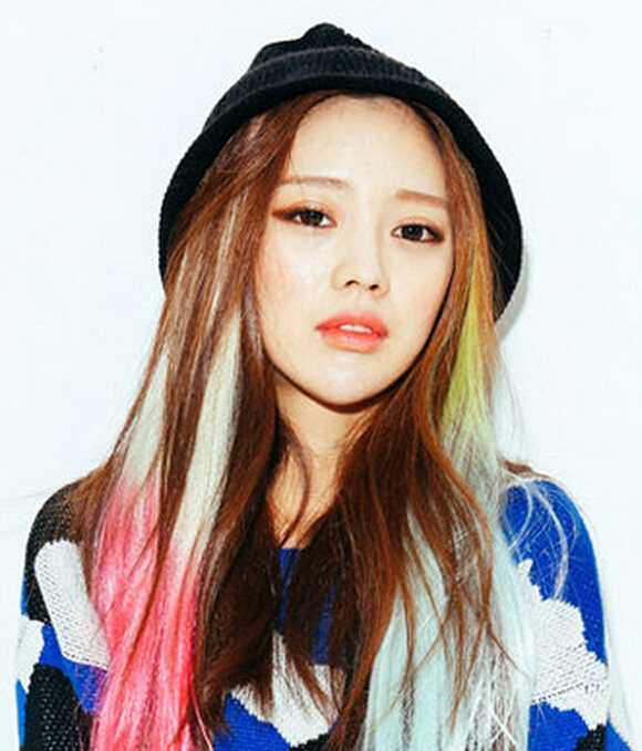 这款绚丽彩虹色的渐变色头发发型图片,超级个性潮流,摇滚潮女的最爱,中分的柔顺飘逸直发发型设计,搭配黑色针织帽子,显得韩范时尚摇滚气质的一款渐变色头发造型。
