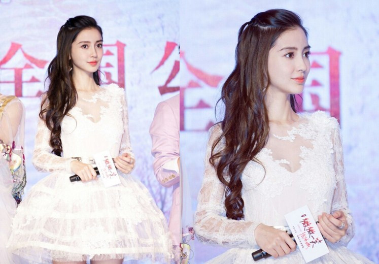 Angelababy长发造型01》》》》》最近一直忙着电影宣传的baby可谓美翻天,一袭及腰的长卷发蓬松自然,深棕的发色光彩靓丽,搭配着半扎发的造型,将精致小巧的脸型衬托得更加完美,微微一笑的样子真的会倾城!