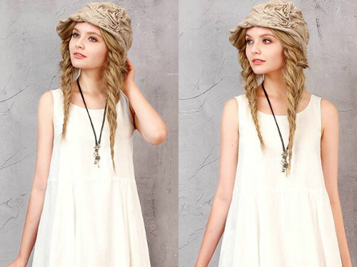 鱼骨辫精巧、唯美,被誉为最具女人味的发型之一,双鱼骨辫的造型更是可爱中又带点俏皮,让女孩子充满灵气,变身优雅女神,最后戴上一顶有设计感的帽子搭配白色裙子,更显悠闲自在。