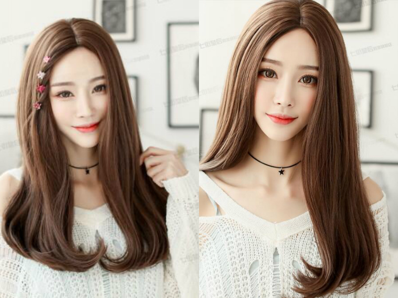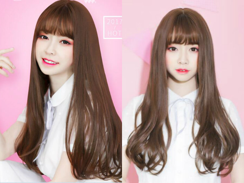 空气刘海是时下的流行趋势,薄薄的刘海透气感十足,自然下垂的披肩长发随意自然,卷曲的发尾为整个发型增添了慵懒感,看起来逼真自然,谁会想到这是顶假发呢?