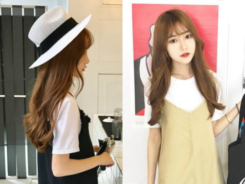 对于轻熟女来说,这个咖啡色发色就是个不错的选择哟,既能保持熟女的气质,又能显出年轻感。把披肩的长发发尾稍加卷烫,不经意就展现出女生特有的曲线美,及眉的刘海使额头若隐若现,更凸出女生精致的五官,白皙的脸蛋在咖啡色发色的衬托下更显细腻剔透。