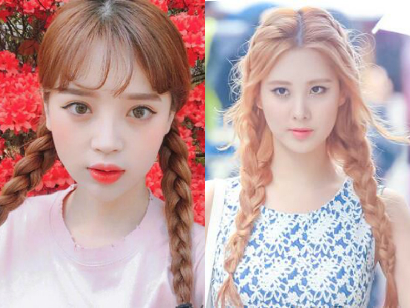 扎发本就可爱减龄,再变成两条麻花辫更是俏皮感满分。空气感十足的刘海经过卷烫带着些弧度线,两条辫子垂放在左右两侧,使妹子显得清新可人,染上暖色调的橘色之后更是加分,除了突出妹子娇嫩的肌肤之外,更充满阳光活力感,像邻家小妹一样让人觉得温暖亲切。