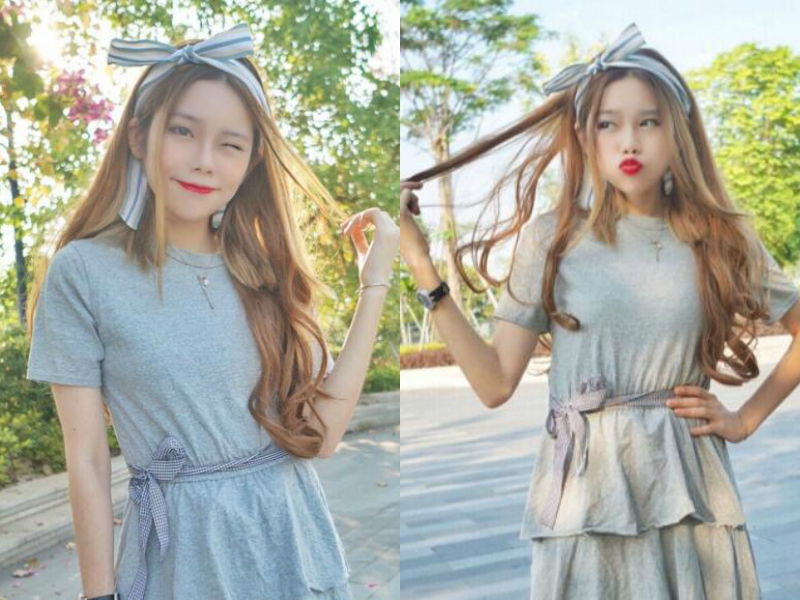 头戴蝴蝶结发饰为妹子增添一丝甜美感,一头长发卷度明显而自然,中分设计的长刘海垂落在脸颊两侧,修颜又显瘦,金色的染发使整个造型时尚感倍增,在阳光的照耀下显得性感又迷人。