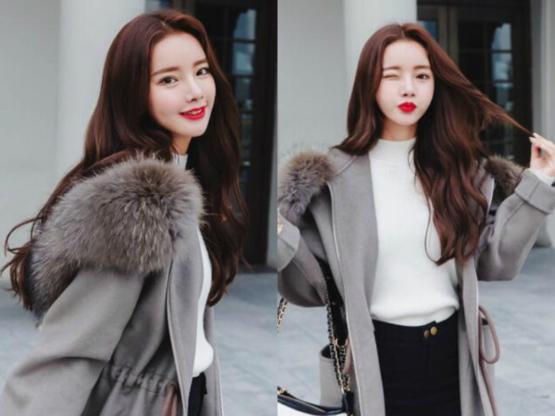 中分的刘海设计露出女生姣好的脸蛋,光洁的额头看起来清爽干净,一头浓密的长发经过卷烫后充满大波浪般的纹理感,随意地散落背后显得随性又自然,搭配妹子鲜艳的红唇,一股小女人的娇媚气息油然而生。