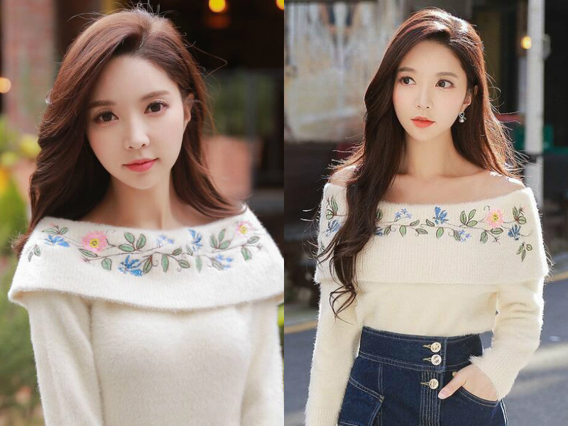 棕色的染发看起来时尚靓丽,在阳光下妹子头顶上细碎的绒毛都看得一清二楚,显得轻柔纯美,偏分的刘海设计使得两边不对称,夹起一侧头发至耳后,从侧面展现出妹子完美的脸型线条,带着轻微曲线感的长发披肩而下,搭配露肩毛衣,露出性感的锁骨之余更展现出妹子身上浪漫的女人味。