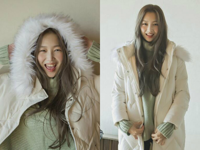 同是一款中分刘海的长发陶瓷烫大卷发型,但不用的发色却给人以不同的效果。亚麻青色的发色新颖的同时也很抢眼,展现出女生个性独立的一面,带着卷度的长刘海贴着脸颊滑落至胸前,把脸蛋修饰得小巧而完美,露出额头更显五官精致!