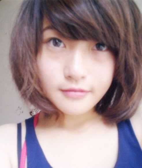 这款略显蓬松的女学生短发发型,虽然看上去有点成熟,但也不是学生的清纯,很适合大学生。