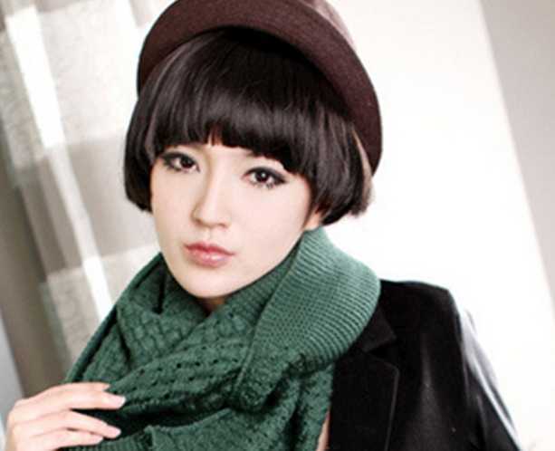 这款很有特色,两边的头发不是很对称,不过这样子看起来更美,前面的刘海设计和及耳的短发多了几分时尚和帅气的感觉。