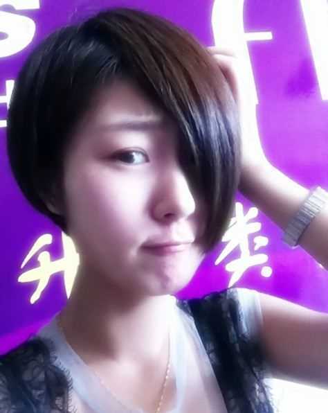 斜刘海短发虽然显得柔美,可是也给人一种干练的感觉,清爽自然,而且还散发出一些轻熟女的味道哦。