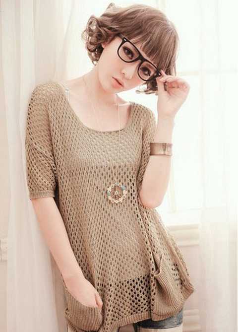 齐刘海,搭着一副黑框眼镜很显气质哦,蓬松的短梨花卷,增添了几分俏皮感,挺适合好动阳光不喜欢打理的女生哦,好看。