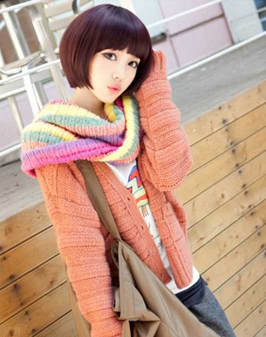 波波头,修饰脸型的效果非常好哦,而且也很适合卖萌哦,卖起萌来超可爱的,短短的齐刘海波波头,再染上一些时尚的颜色,清纯外又可以减龄卖萌哦。