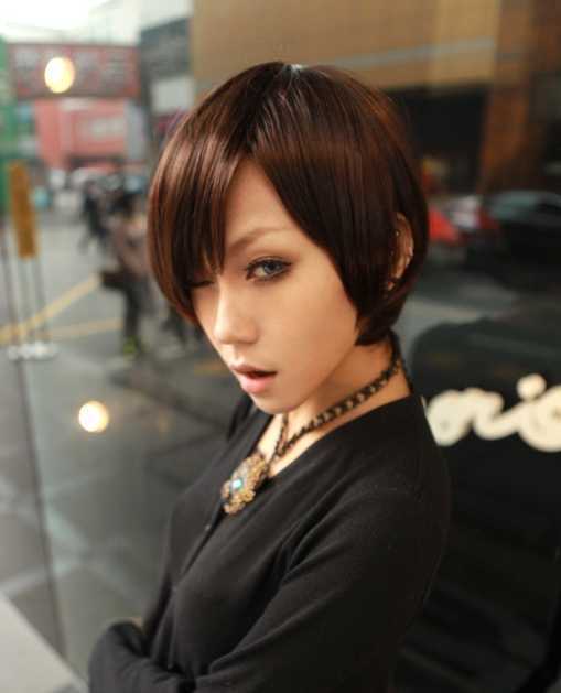 减龄短刘海发型四:斜刘海短发