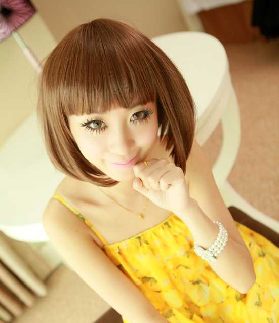 可爱哦,精致的五官和美美的脸型搭上这款波波头短发好有芭比娃娃的感觉,棕黄的头发,时尚外加一丝俏皮,减龄效果是超捧的哦。