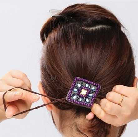 如图固定好头顶的头发,那就开始下面的咯,用一个自己喜欢的发夹或者是橡皮筋把脑后的头发扎好,也不可以随便弄哦,乱了就不好看。