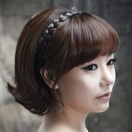 碎碎的齐刘海,稍微外翘的发梢,知性甜美还非常显气质,一条光洁的麻花辫从头顶经过,添了几分甜美显得很有特色哦,虽然没有发饰,可一样非常美哦。