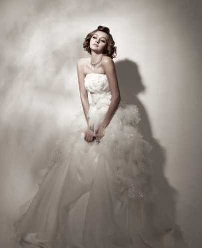 还是唯美感的短发发型,梨花卷给人一种俏皮可爱的感觉,diy一下的刘海不仅修饰了脸型还增添了美感,搭上唯美的婚纱,赞哦。