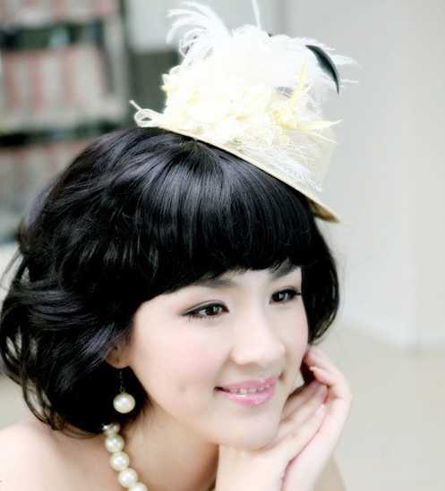 厚重感的齐刘海,俏皮甜美的梨花短发,显得很甜美多了几分灵动气息,乌黑有光泽的头发为整个发型增分不少,美美的发饰添了几分甜美,搭上一个甜甜的微笑,超美超赞哦。