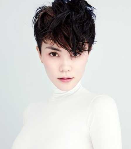 王菲这款个性短发,前面刘海往前梳,打着发蜡,稍带凌乱感,添了几分俏皮感,彰显个性,遮盖了额头,可修饰脸型哦。