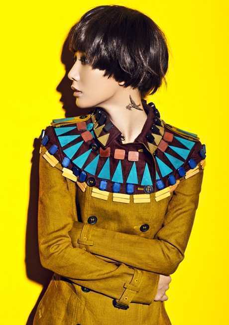 时尚个性的蘑菇头短发,王珞丹演绎出来更具时尚魅力,光滑柔顺的头发,两颊内弧的蘑菇头,
